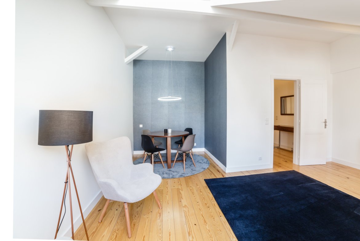 Renovated apartment with fireplace